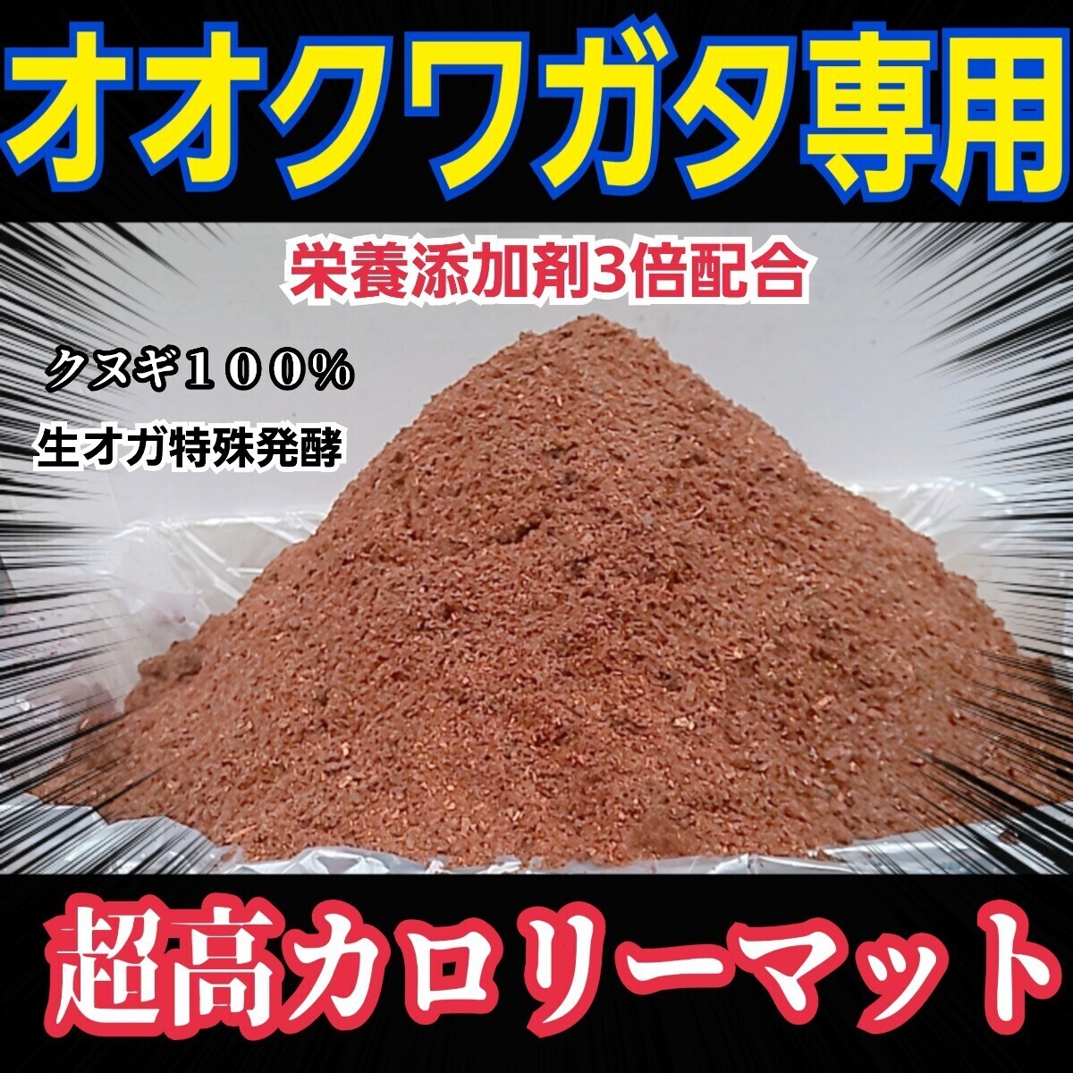 長年の研究からオオクワガタに最も有効であったクヌギのオガコを100%使用して作成した最高峰の新品の菌糸『ヒマラヤひらたけ』から仕上げた菌床発酵マットにオオクワガタ専用の栄養添加剤をたっぷり配合した超高カロリーマットです。