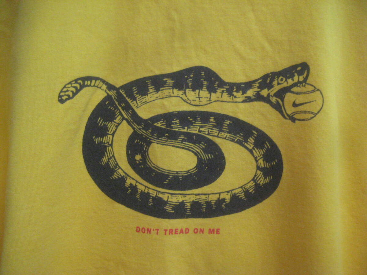 NIKE ナイキ プリントTシャツ DON'T TREAD ON ME ガラガラヘビ 希少です。 サイズ表記Mです。 実寸は平置きで着丈約67cm、身幅約53cm、肩幅約50cmぐらいです。 まだまだ問題なく着用頂ける状態かと思いますが、中古品ですので多少のスレ、汚れ等はご了承ください。汚れあります。 古着に対し神経質な方はご遠慮ください。ノークレーム、返品不可でご了承ください。 サイズに関しましては表記より実寸を参考にしてください。 画像の物が全てとなります。(ハンガー、トルソー、マネキン等の什器類は販売商品には含まれません。) ※着丈は後部の襟下から裾先を計測、身幅は脇下で直線で計測、袖丈は肩から袖先で計測(ラグラン等計測できない物は脇下から袖先で計測)、肩幅は肩部左右の直線で計測(ラグラン等は計測不可)といたします。多少の誤差は許容範囲としてご了承ください。 他にも古着関連、多数出品しております。同梱可能ですので是非ご覧ください。 注意:ご入札前に商品説明、送付方法、支払方法、その他の欄をよく読んでご理解頂ける方のみご入札をお願いいたします。 管理ナンバー(T-03278) | |||