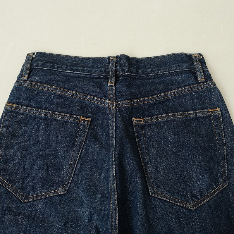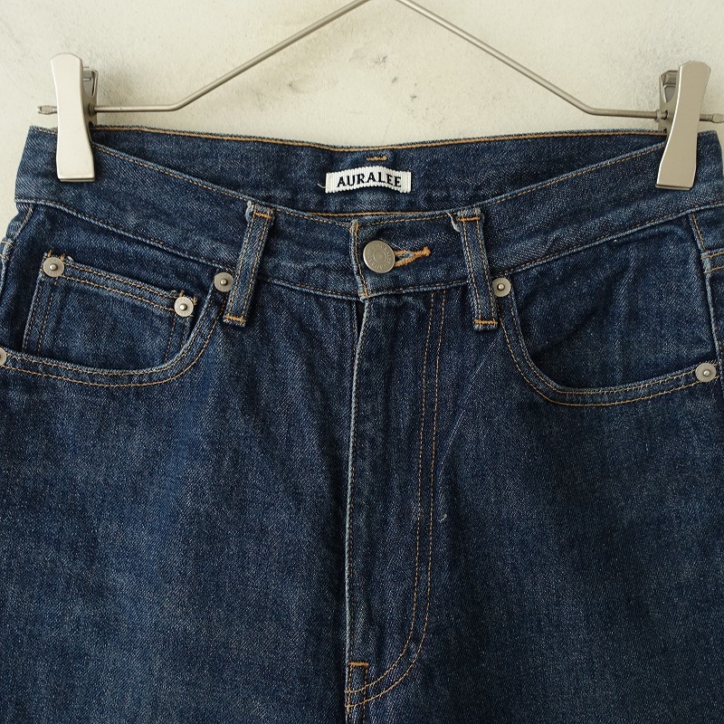| AURALEEのハードツイストデニム5Pパンツです。カラーは洗いこんでも生デニムのようなカリッとした風合いのデニム素材で仕立てられております。フロント開口部はジップフライ仕様で、5ポケットです。定価(メーカー希望小売価格)37,400円 税込みの商品です。 |
