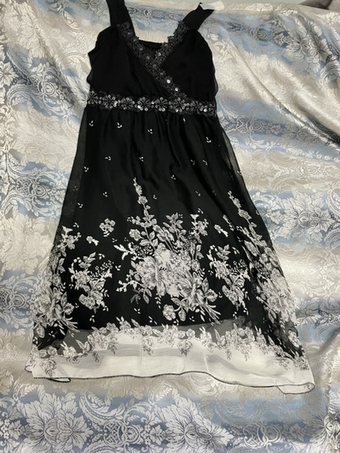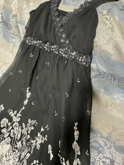 【商品の説明】タグ付新品のキャミ膝丈フェミニンなワンピース。黒地胸元・ウエストがビーズ、裾白の花柄。大きな花柄。ウエストゴム。| 出价者 | 信用 | 价格 | 时间 |