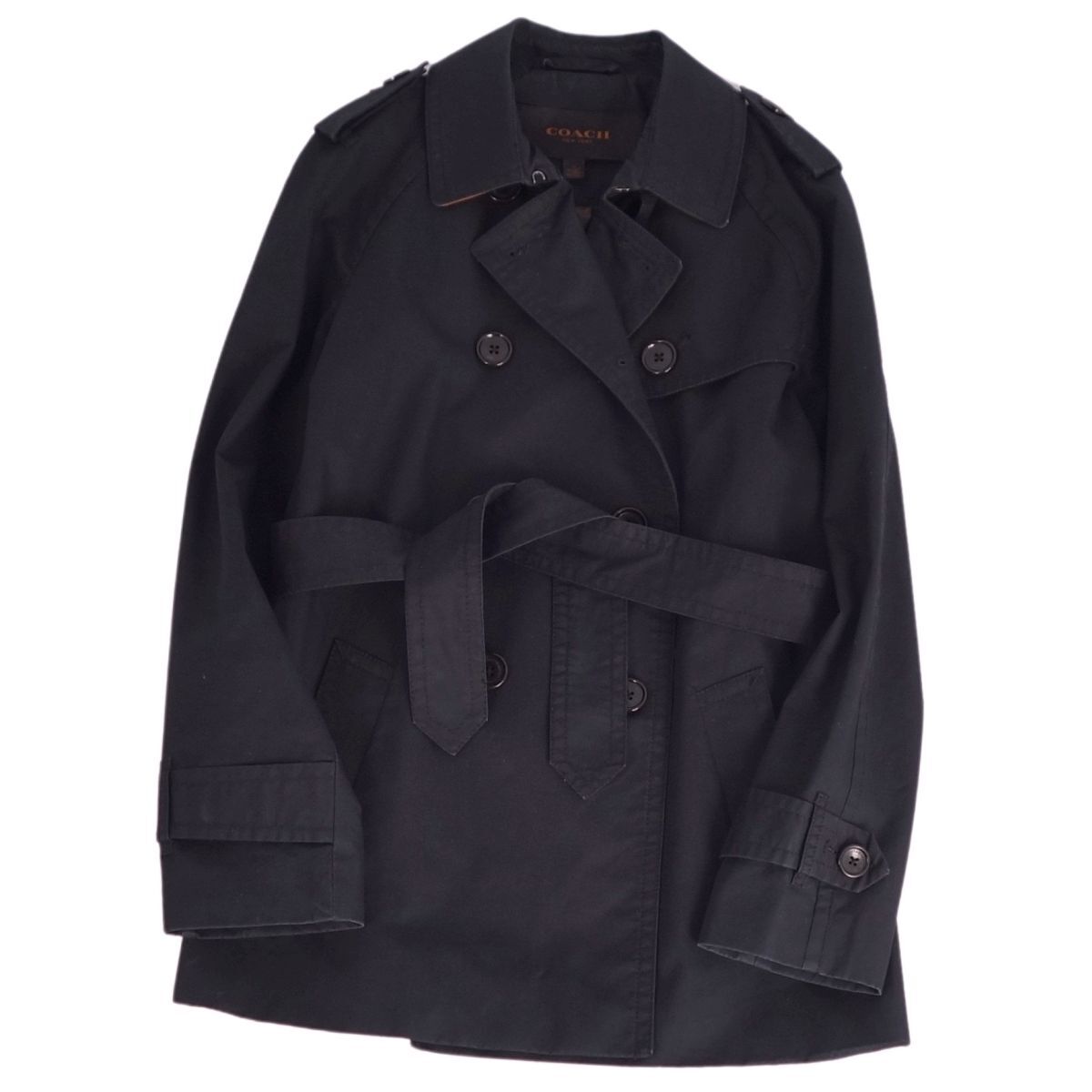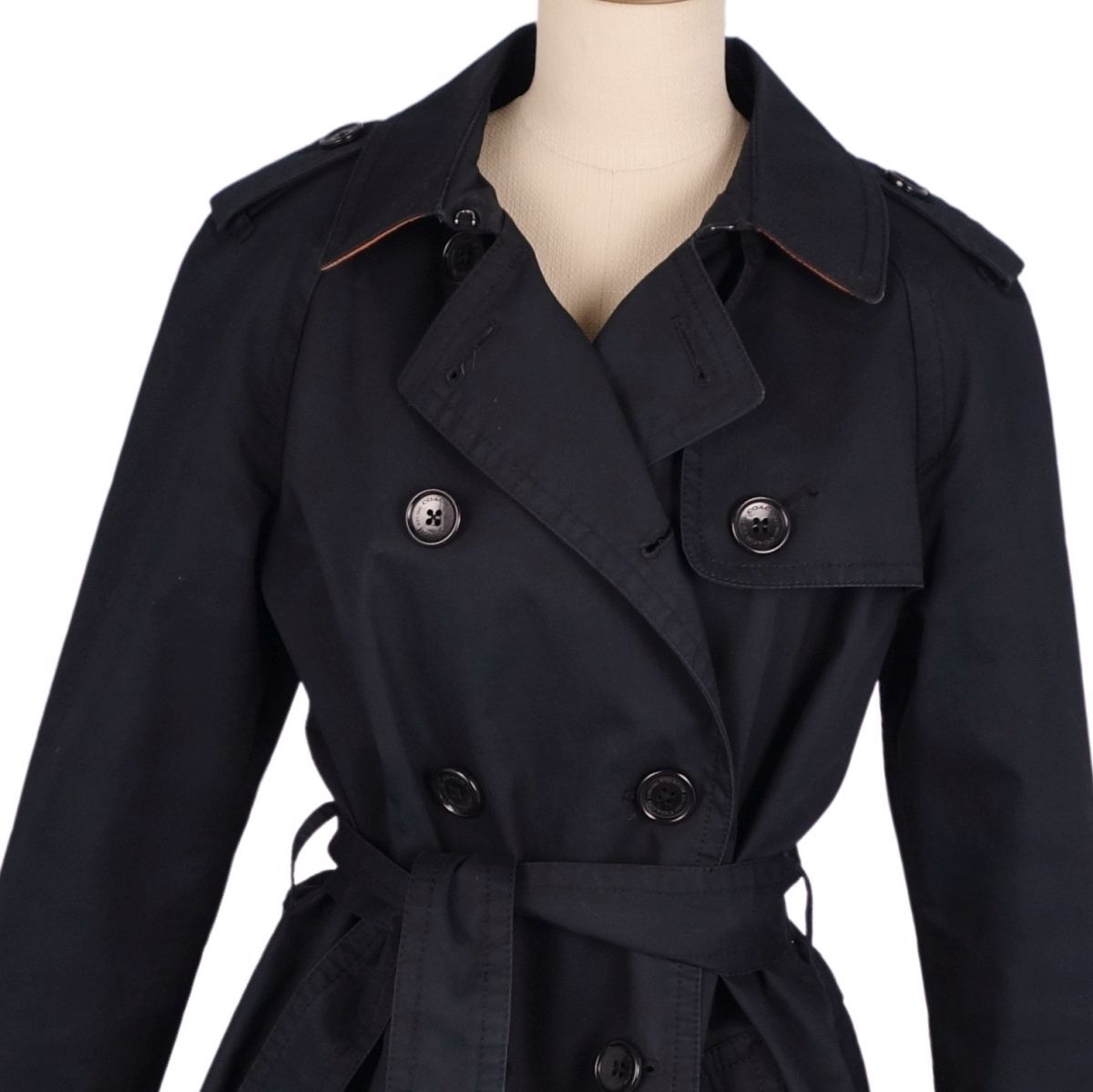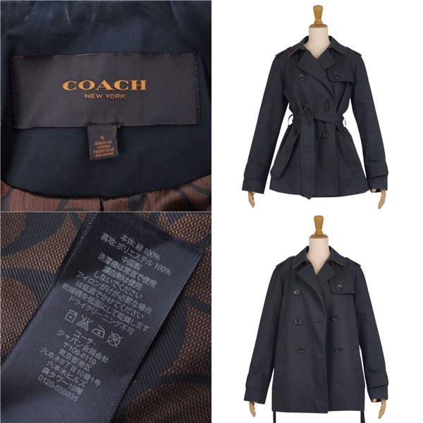 | 美品 コーチ COACH コート トレンチコート 裏シグネチャー コットン100% アウター レディース S ブラック |