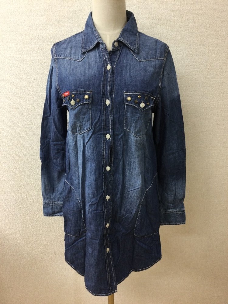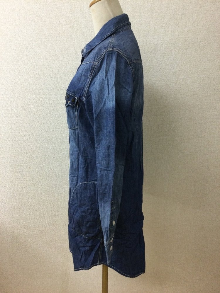 | 管理番号:10^133844 リークーパー 色落ちブルー ダンガリーシャツワンピ 表示サイズ:L 実寸(参考)