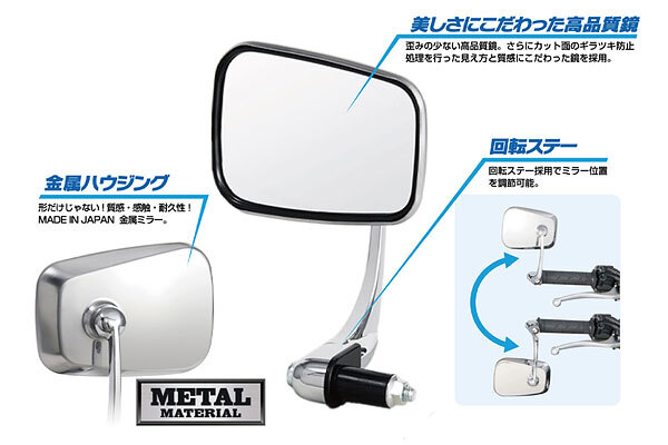 | ●形だけじゃない!質感・感触・耐久性にこだわった日本製ミラー! ●美しさにこだわった高品質鏡 ●回転ステー採用でミラー位置を調整可能 ■仕様 ネジ径:ハンドル内径17.5~18mm対応 色:ブラック 材質:鉄 部品構成: ・ミラー本体(左右共通)×1 ※H18年以前に生産された車両みは適合しますが、H18年以降に生産された車両にはお取り付け出来ません。 ■ミラー適合表(ミラー取付穴ネジ参考表) ※取り寄せ品 |