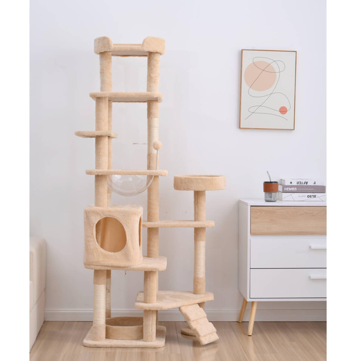 この商品について: ◎01 本能的に遊ペるアイテム ◎02 たくさん機能があるスリムキャットタワー 実用性満点 ◎03 安全性満点! ◎04 高さを重視したいなら、170cm以上あるタイプ ◎05組立簡単 デザインが豊富 ◎06爪とぎは必要不可欠 ◎07見晴らしい展望台x3 ◎08アイクロベルボア生地を採用 ◎09ちょうどいい段差で登るも降りるも楽々動線 商品の説明: ◆01本能的に遊ペるアイテム 部屋の中でも猫にとってよい環境を与えられ、キャットタワーは本能を満たせる道具ともいえるでしょう。 ◆02たくさん機能があるスリムキャットタワー 実用性満点 01見晴らしい展望台 02分厚い底座 03宇宙船 04ちょうどいい段差 05安心感満点の隠れ家 06デザインが豊富 ◆03安全性満点! 01土台が幅44cm・奥行48cmと大きく、重量があるので全体的に安定性は高いといえます。 02猫ちゃんや子供の安全を守るために、転倒防止のが付きます。 ◆04高さを重視したいなら、170cm以上あるタイプ 運動が好きな猫を飼っていて高さを重視したいなら、据え置きタイプがおすすめです。 天井まで173㎝の高さがあるので、高いところが好きな猫の本能を刺激できます。 ◆05組立簡単 デザインが豊富 組み立てやすく床に置くだけなので、移動させたいときも簡単。 機能が充実しておりデザインが豊富なのも特徴です。 ベッドやハウスが充実して種類が多い ◆06爪とぎは必要不可欠 爪とぎは、猫にとってストレス発散や爪の手入れのために必須となるアイテムです。 最下段に麻縄素材の爪とぎを備えたキャットタワーが猫に大人気。 ◆07ゆったりくつろぐために必要な隠れ家・宇宙船 隠れ家:31*50*30cm 暗くて狭い猫が落ち着ける場所 宇宙船:内寸30cm 下から覗くとかわいい肉球が見える この二つは寝床としてくつろいだり、自分だけのテリトリーとして使ったりすることができます。 ◆08見晴らしい展望台x3 猫ちゃんの気分に合わせて好きな位置を選べるように、高い位置と低い位置の3つの展望台を設置します。 寝るベッド3つ! ◆09アイクロベルボア生地を採用 可愛いアイクロベルボア生地を用意し、触り心地がよく猫にとってもふかふかで気持ちよく。 ◆10ちょうどいい段差で登るも降りるも楽々動線 全て30㎝以内のローステップ設計のため、ジャンプ力の弱い子猫でも登れます! | 出价者 | 信用 | 价格 | 时间 |