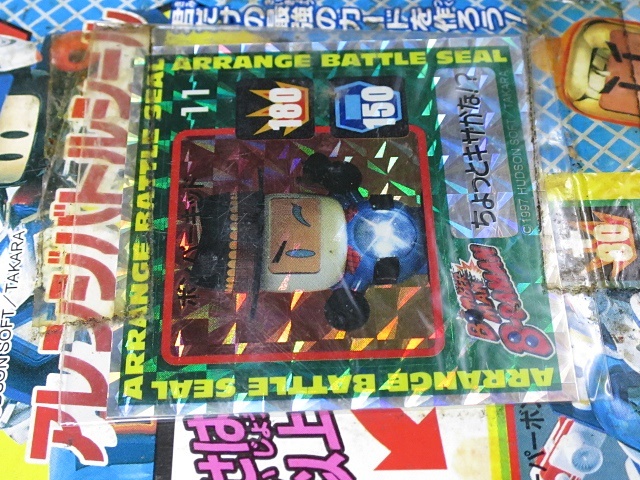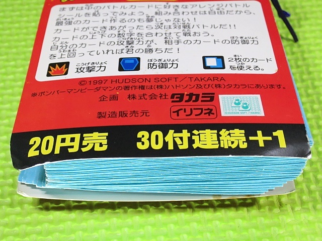 | ボンバーマンビーダマン アレンジバトルシール カード 1束.各々33枚+表紙シール付 ・1束33袋(カード33枚、シール33枚+表紙1) ・1袋にカード1枚とシール1枚入り ・1997年 ・イリフネ製 ・未開封 ・台紙、中袋よごれがあります。 |
