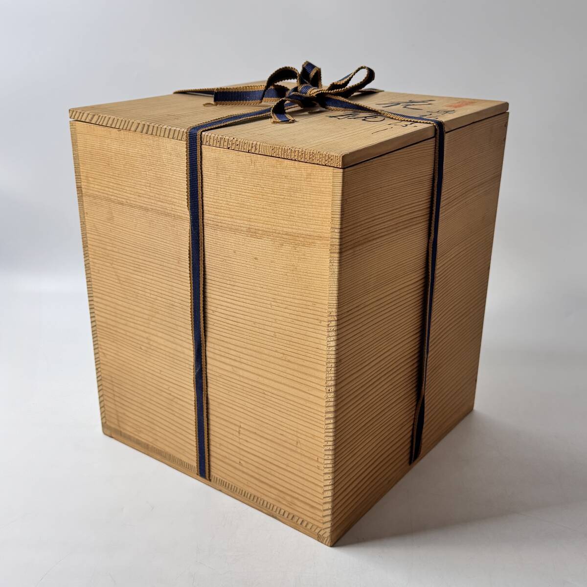 共箱に経年保管でのくたびれ(埃汚れ、色褪せ、色焼け、蓋の反り、シミ汚れなど)が出ています。