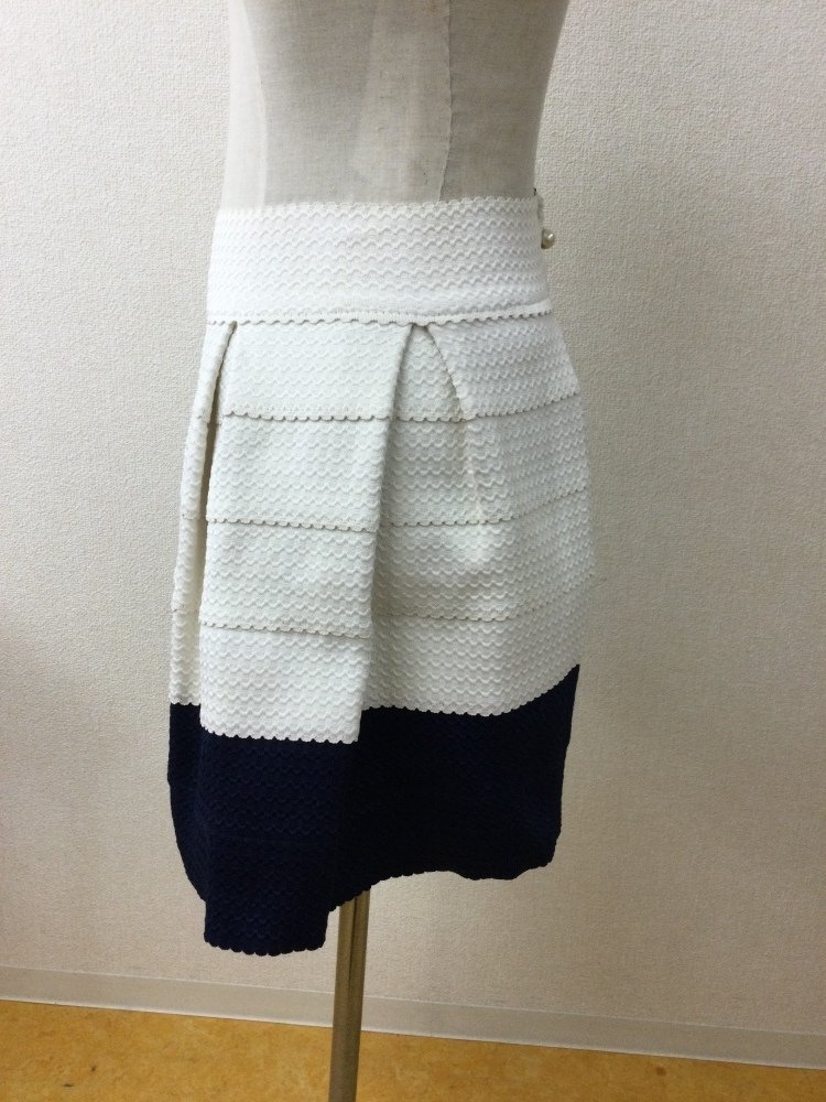 | 管理番号:99^134227 Magender オフホワイトと紺のツートンスカート 伸びる生地 表示サイズ:なし 実寸(参考)