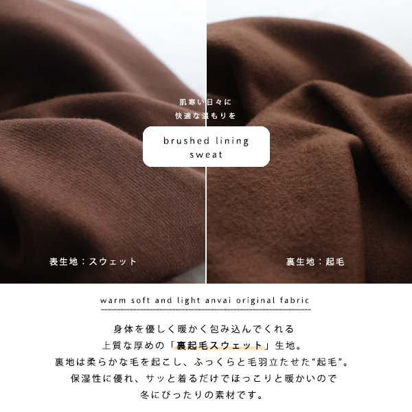 柔らかで動きやすい、上質な厚めの「裏起毛 スウェット」生地。