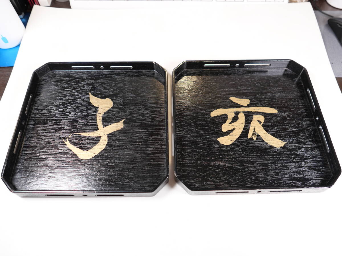| 中古★山田平安堂 漆器 干支 角盆 子 亥 2種セット 22.5×22.5cm | ||