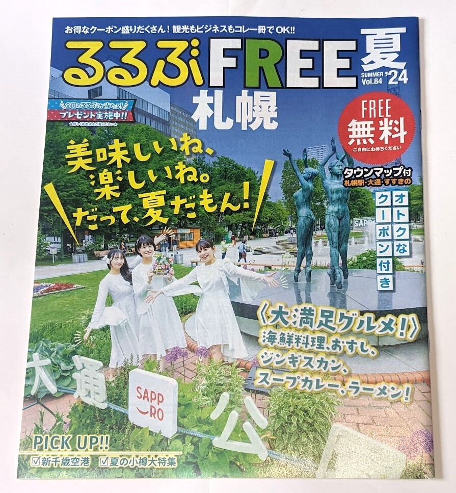 札幌で活動するアイドルグループ「タイトル未定」が3人の時の「るるぶFREE札幌夏号」 1冊 です。掲載は表紙のみですが、どうでしょう? |