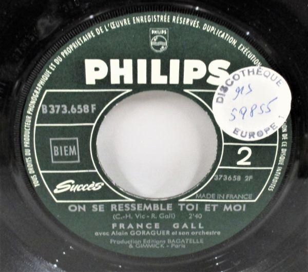 フレンチ Jukebox 45 (^^)/ France Gall L'Amrique (アメリカ万歳)/ On Se Ressemble Toi Et Moi (似ている、私とあなた)