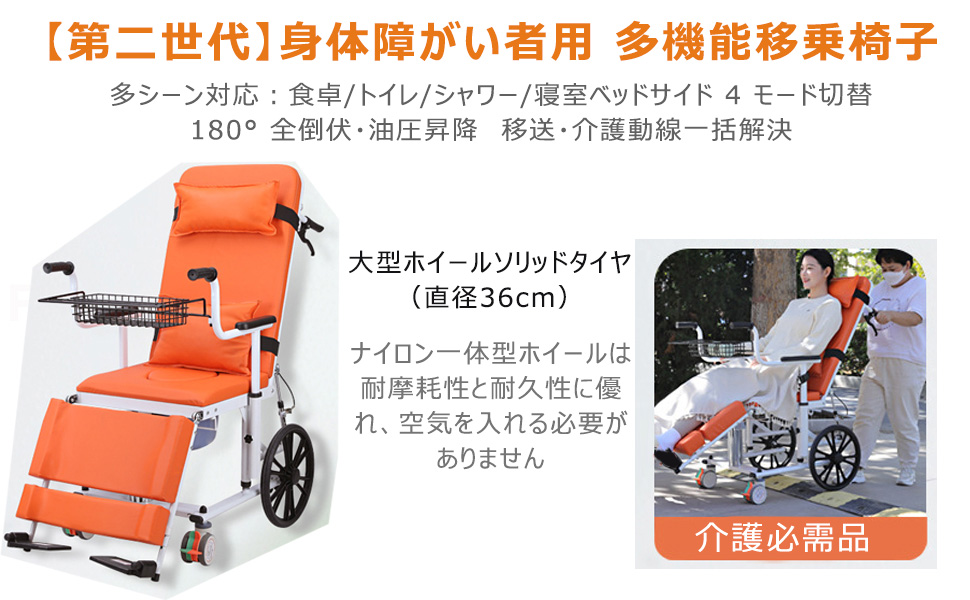 移乗機からダイニングテーブル、ベッド、トイレ、入浴、屋外での日光浴など、さまざまなシーンへの移動の問題を解決します。