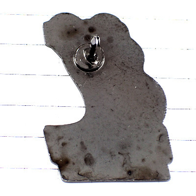 | ピンズは、裏側に針が付いており、金属の留め金でとめるようになっています。 留め金が付属しています。新品の留め金も一緒に発送いたします。 | |