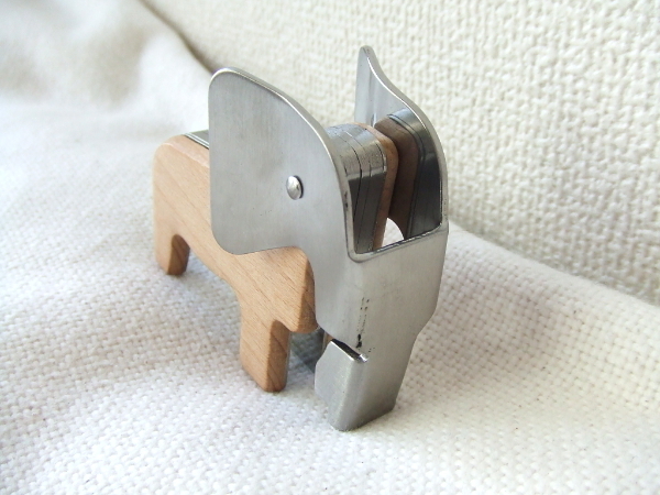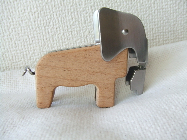 | オブジェのようなゾウのオープナー。 ステンレスと木製の質感が魅力です。ゾウの顔の部分は ボトルオープナーとして、尻尾の部分には ワインオープナーが収納されています。素材の質感や動物のデザインが楽しい オブジェのようなボトルオープナーです。 |
