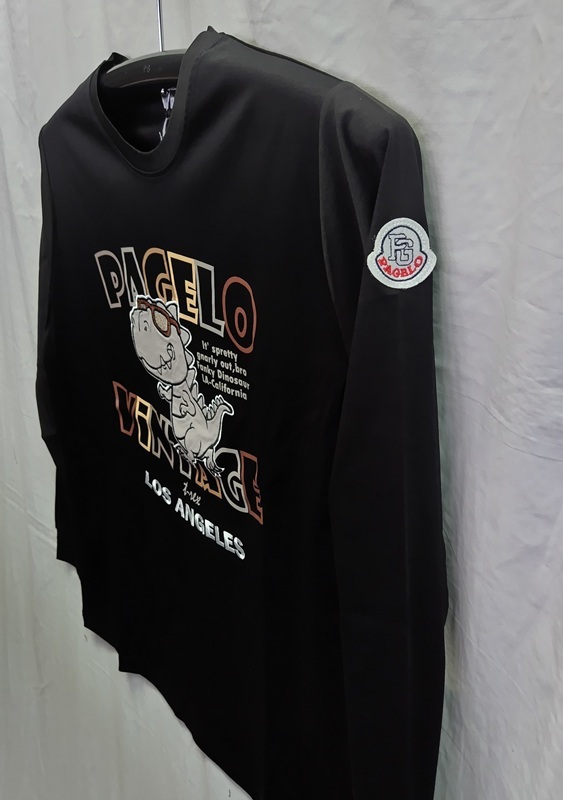 PAGELOの長袖カットソーです。56-1591-07 M寸 05色 綿100% (M寸表示の平置き実寸です)着丈:68cm 胸幅:53cm 袖丈:62cm 肩幅:44cmPAGELOの長袖カットソーです。綿100%表示ですが光沢があり伸縮性もありポリエステルの用な生地です。前に大きな刺繍とプリント入りで袖に刺繍のワッペン付きです。定価¥19800です。水曜日は定休日ですので、連絡、発送等の取引業務は