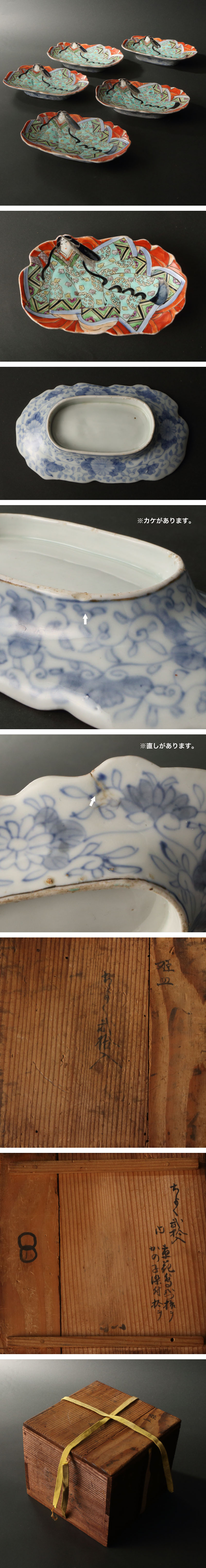 古伊万里の姫皿です。 元禄期の姫皿を本歌とする官女風の美人を描いた皿で、桃の節句(雛祭り)の食器として重宝されました。 顔立ちもふくよかで愛らしい、波千鳥の文様も色鮮やかな逸品です。 付属:時代箱が付属します。 寸法:高さ3cm、幅18.5cm、奥行11cm(最大幅。若干の誤差はご了承下さい) 状態:経年感、複数直し、高台にカケがございます。 |