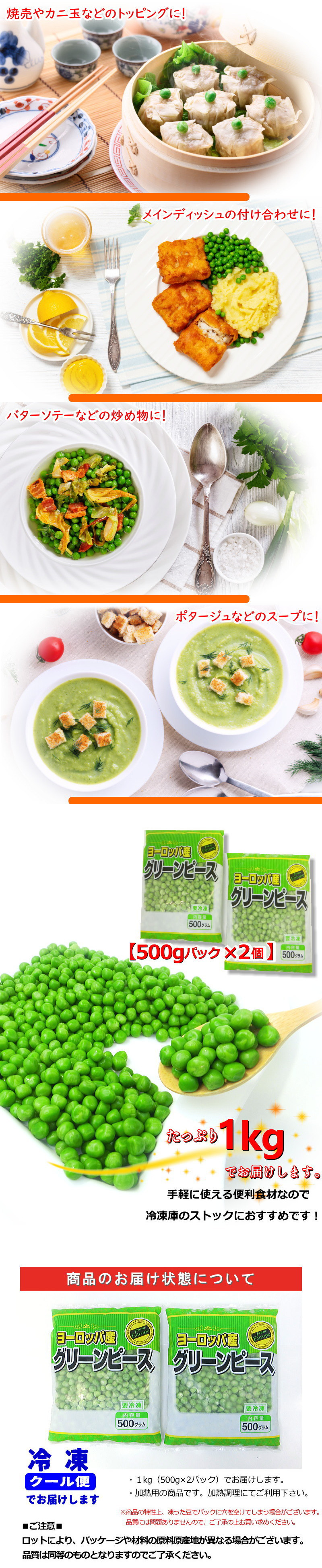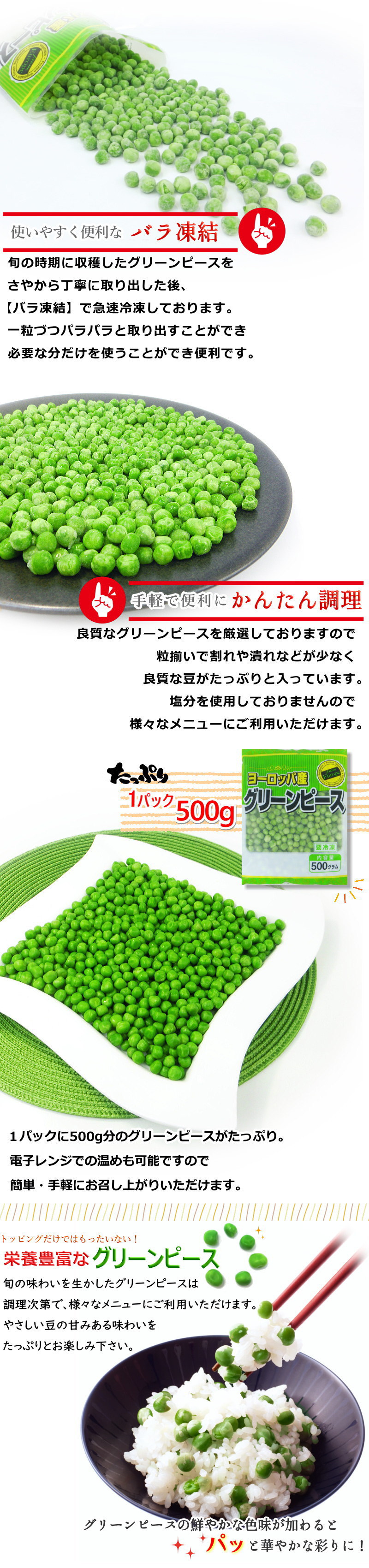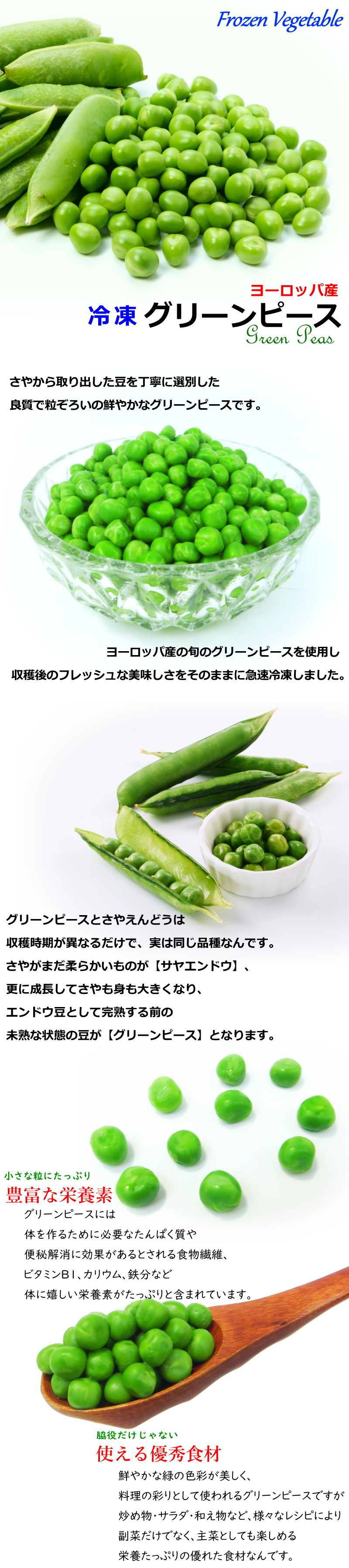 ヨーロッパ産のグリーンピースをバラ凍結で冷凍した