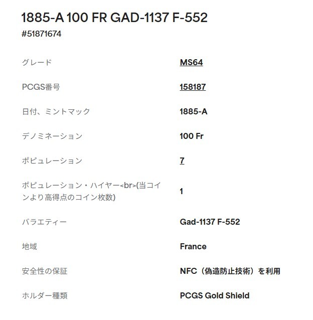 鑑定会社 | PCGS (Professional Coin Grading Service) |