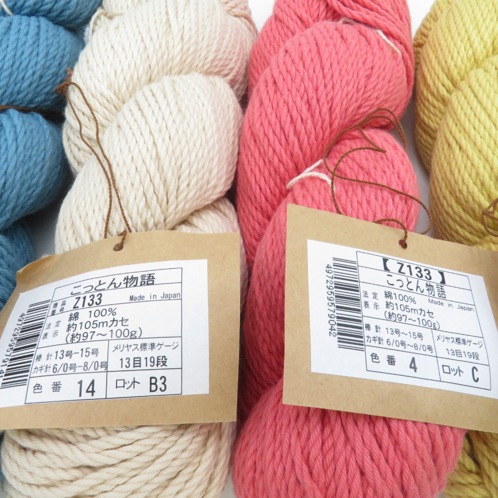 | 毛糸 毛糸ZAKKAストアーズ こっとん物語 5セット 2番色 4番色 11番色 14番色 1カセ約100g 綿100% 極太 日本製 未使用品 |