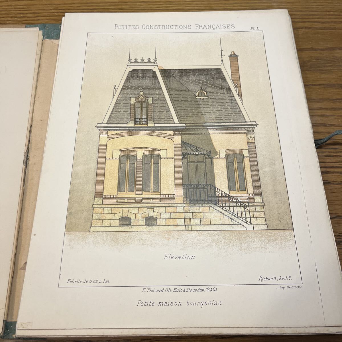 発行はおそらく19世紀後半から20世紀初頭頃。4ページが厚紙のポートフォリオで1枚に折り畳まれた構成です。1つの帙に25点(100ページ)。若干(15点前後)新しめの印刷が混じっています。少ヤケ少シミ少ヤブレあり。概ね経年並程度。