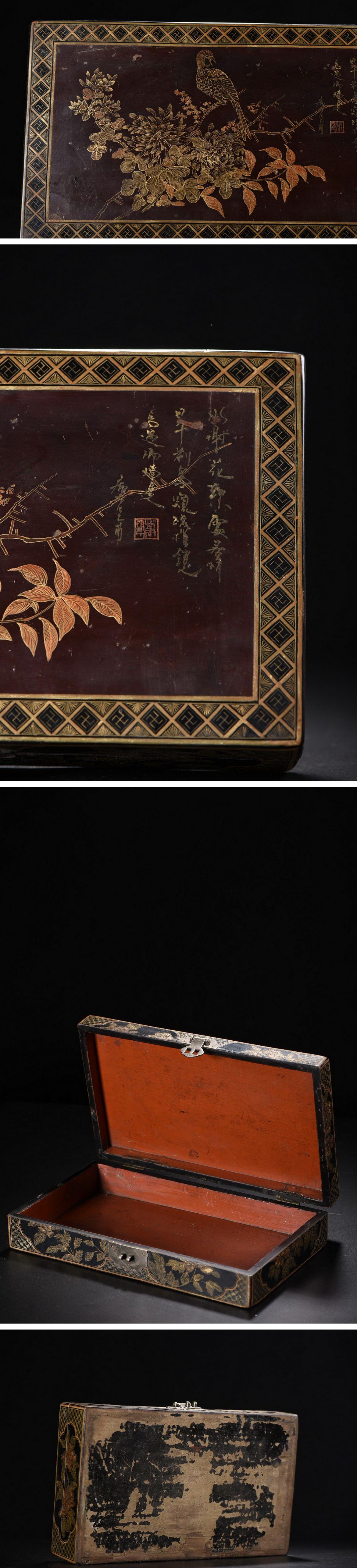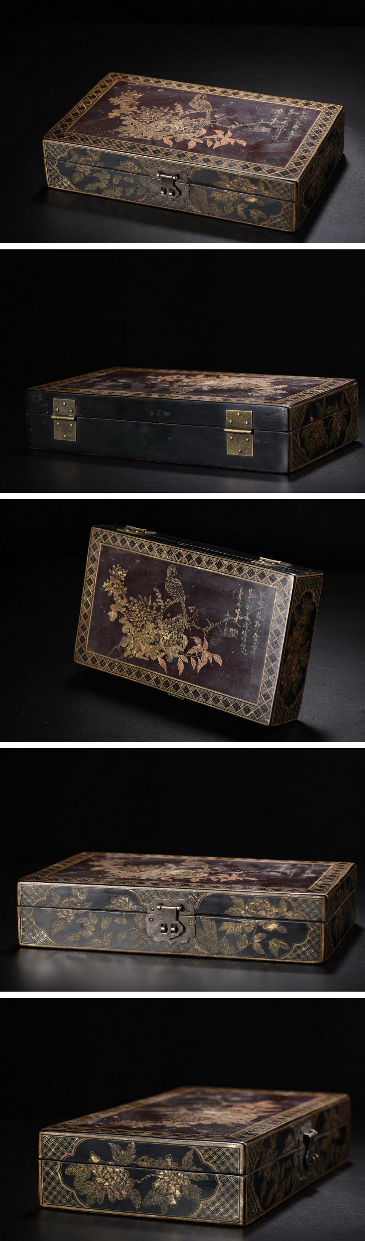 【清】某有名オークション購入 清時代 木胎漆塗り 花卉図金蒔絵文庫 材質保証 古置物 古擺件 古美術 時代コレクション7L9-VT5
