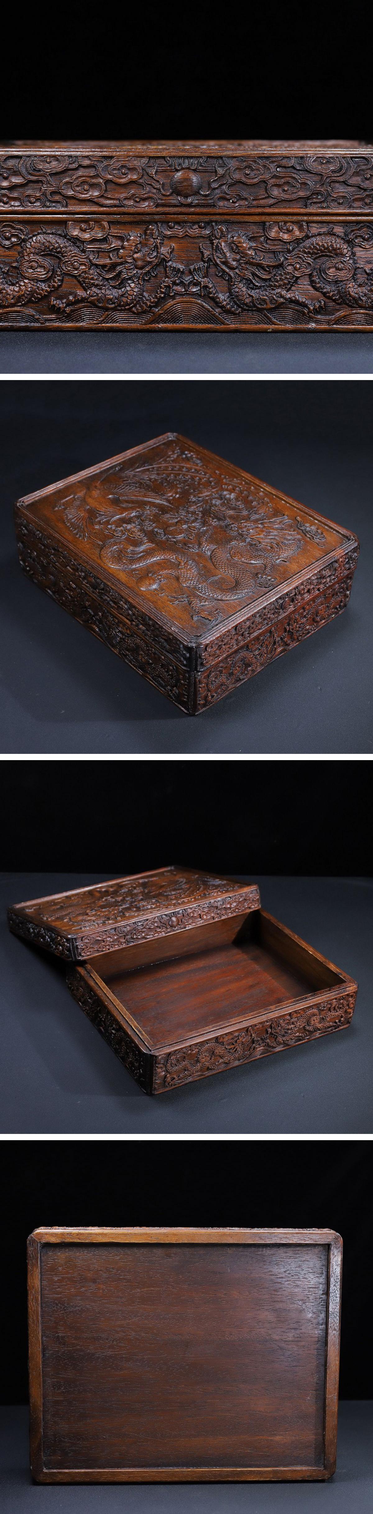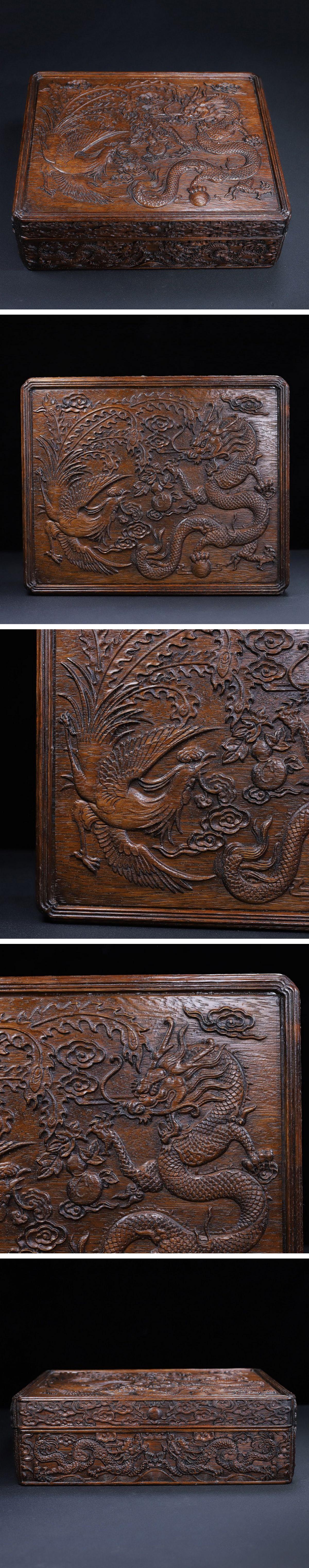 【清】某有名オークション購入 清時代 黄花梨 龍鳳紋蓋物 古置物 古擺件 古美術 時代コレクション7L9-PP3