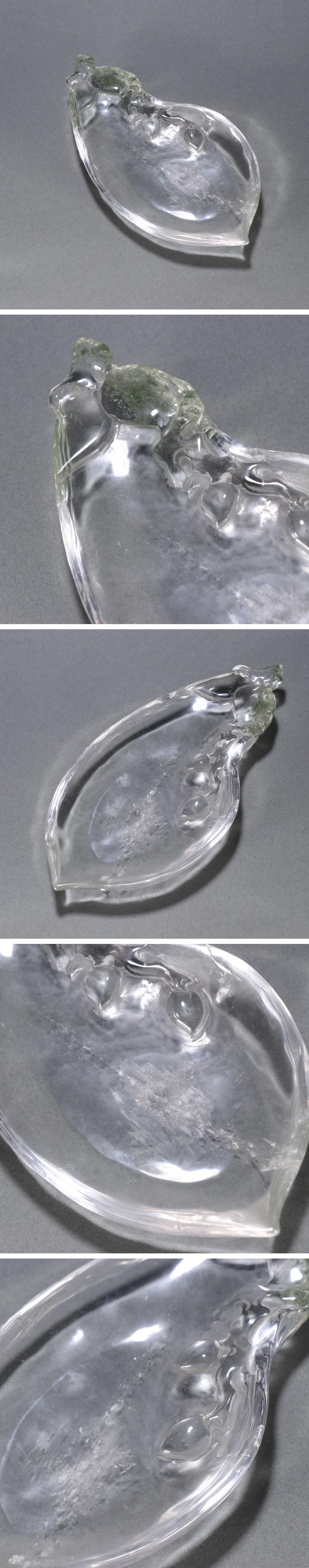 【清】某有名オークション購入 清時代 天然水晶 樹葉紋筆舐 材質保証 書道具 古置物 古擺件 古美術 時代コレクション7L9-MU5