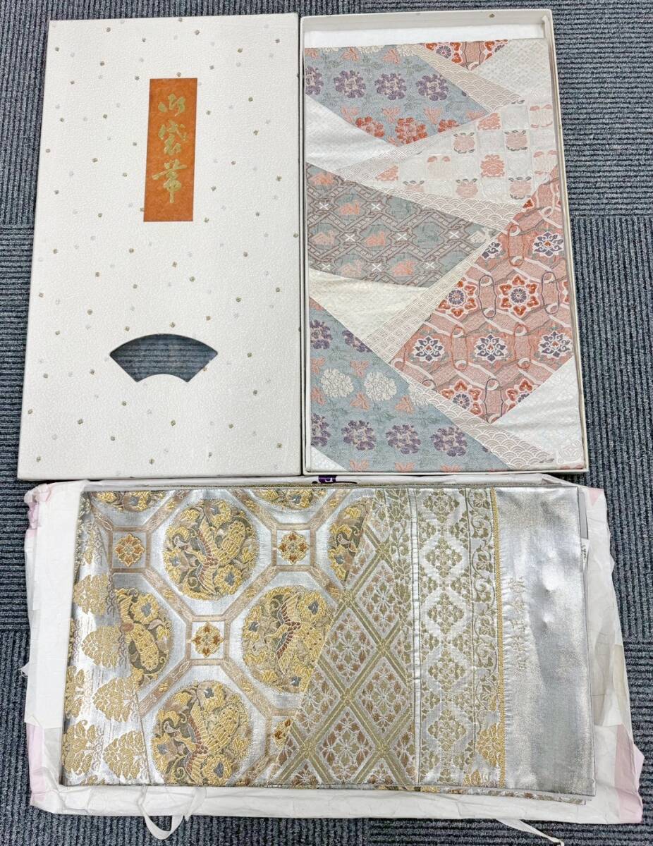 1円~ 袋帯 金彩 正倉院 鳳凰 花柄 帯 着物 和装 レディース 2点セット