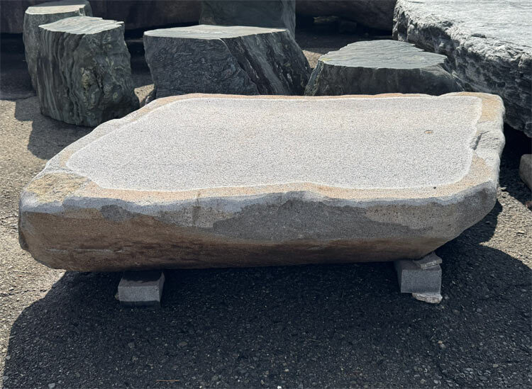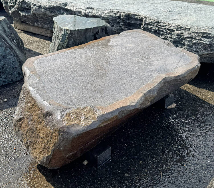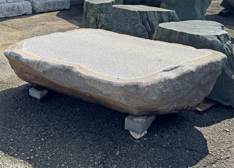 | 和風のお宅にぴったり!縁側の踏み台に 沓脱石 ↓ 水に濡れた状態 ↓ ![]() 【サイズ】幅約1m20cm 奥行約78cm 高さ約27cm ↓ 乾いた状態 ↓ ![]() ↓ 水に濡れた状態 ↓ ![]() ↓ 乾いた状態 ↓ ![]() ↓ 水に濡れた状態 ↓ ![]() ↓ 乾いた状態 ↓ ![]() 沓脱石とは、リビングなどから家の外へ出るときの 踏み台や縁側の上がり口に置く石です。 1点ものの沓脱石は家にオリジナリティ溢れる風格を与えてくれます。 耐久性も抜群!お手入れ簡単、永久的に使っていただけます! 和風の庭園を眺めたときに自然とお庭にマッチし、天然石ならではの表情で庭の景色を良く見せる重要や役割をしてくれます! 【サイズ】幅約1m77cm 奥行約80cm 厚さ約11cm~16cm サイズは一番大きな部分で測っております。天然石ですのでサイズには多少の誤差があります。ご了承ください。 【送料】送料別 お届け先の地域、お届けのエリア納品方法などの諸条件によって送料が異なります。電話・メール等お気軽にお問合せください。