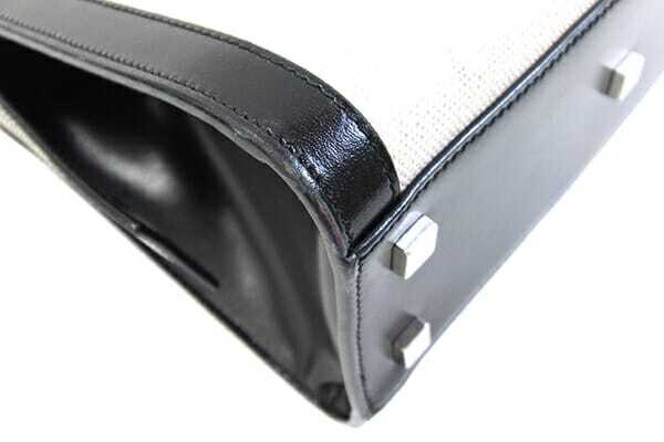 | 状態 | 外側:キャンバス部分薄汚れあり。レザーの所々に小キズ・薄スレあり。角にスリ減りあり。ショルダーのベルトループ(遊革)2ヶ所にステッチ切れあり。 内側:スレ、薄汚れあり。 金具:小キズ、スレ、クスミあり。 |
