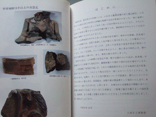 | 商品説明 | 贅を極めた金箔で覆われた瓦を筆頭に、信長秀吉の時代を中心とした城郭の瓦を集めて。 安土城、大坂城、聚楽第、伏見城、上田城等々、それぞれ城ごとに、解説とともに収載。 □ issue date / 1996 。□ venue / 上田市立博物館。□ size / 26x18cm 程 70余頁 。 □ condition / 良好 。□ 送料 / 無料にて承ります。free shipping。 |