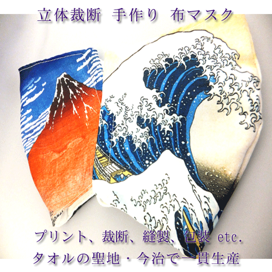 | 特徴 | 発色に優れ退色に強い昇華転写プリント(特許申請中)と 天下の今治ガーゼをプロが一つ一つ縫製した優れモノです。 |