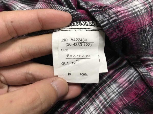 スラクストン Thruxton ネオグランジ ロック ストリート チェック スナップボタン 起毛 長袖 ウエスタン シャツ メンズ 綿100% 4L ピンク です。
