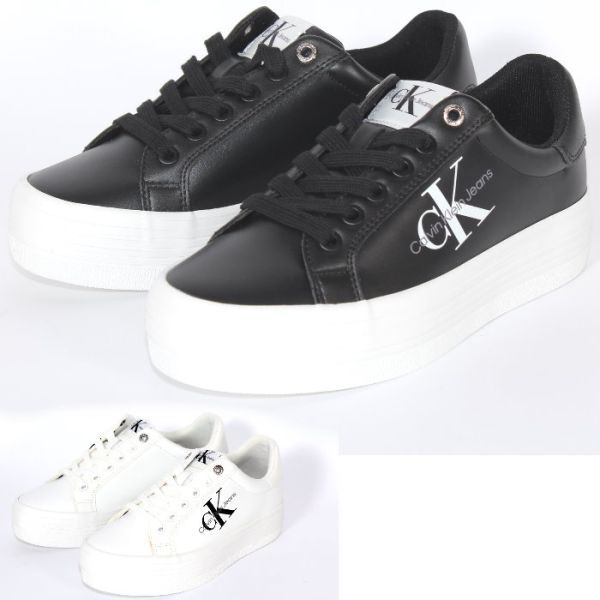Calvin Klein カルバンクライン レザー スニーカー VULC FLATFORM LACEUP LOW LTH YW0YW00847 ブラック/BDS ホワイト/YAF レースアップ 厚底 ローカット シューズ 靴 カラー2色 レディース ユニセックス 売れ筋