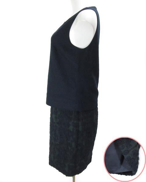 | クイーンズコート QUEENS COURT 紺 切替 ノースリワンピース 2 |