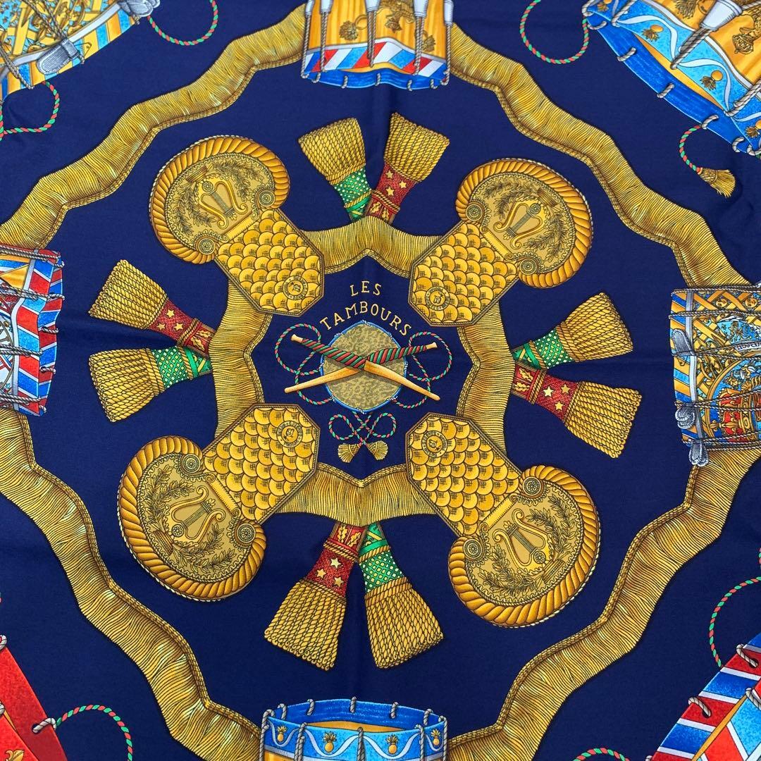 HERMES エルメス カレ90 スカーフ シルク ネイビー系 マルチカラー タンブールの太鼓 LES TAMBOURS ドラム J.METZ ショール ストール レディース| 出价者 | 信用 | 价格 | 时间 |