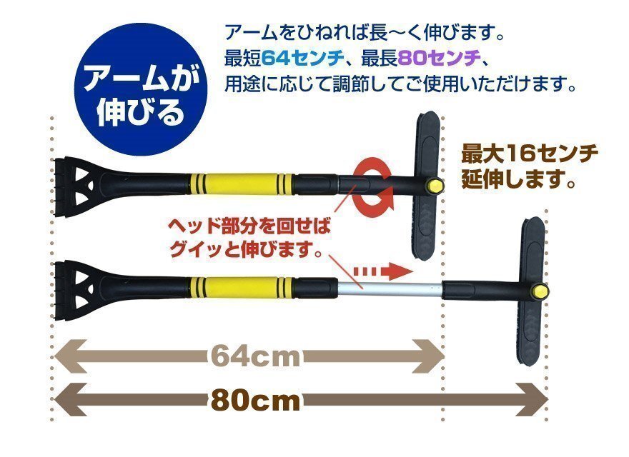 ■スノーブラシ商品詳細■商品名:スノーブラシ 「車用 伸縮 軽量 アイススクレーパー 雪降ろし 除雪 霜取り 氷取り」
