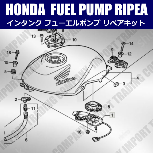 | HONDA/ホンダ (6ヶ月保証) 純正互換リペアセット フューエルポンプX1 ストレーナーX1 フューエルレギュレターX1 シールリングX1 フューエルクッションX1 その他パーツ 適合車種 ホンダ VTR250 MC33 インジェクション用 品番 16700-KFK-631 |