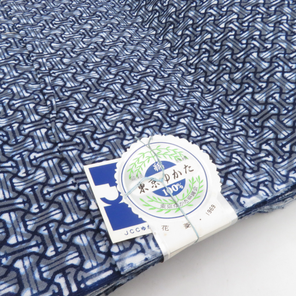 | 反物 男性用 浴衣反物 紺色 綿100% コーマ地 生地 着尺 未仕立て 夏用 男物 糸留め有 和裁練習用 東京本染め 長さ1180cm |