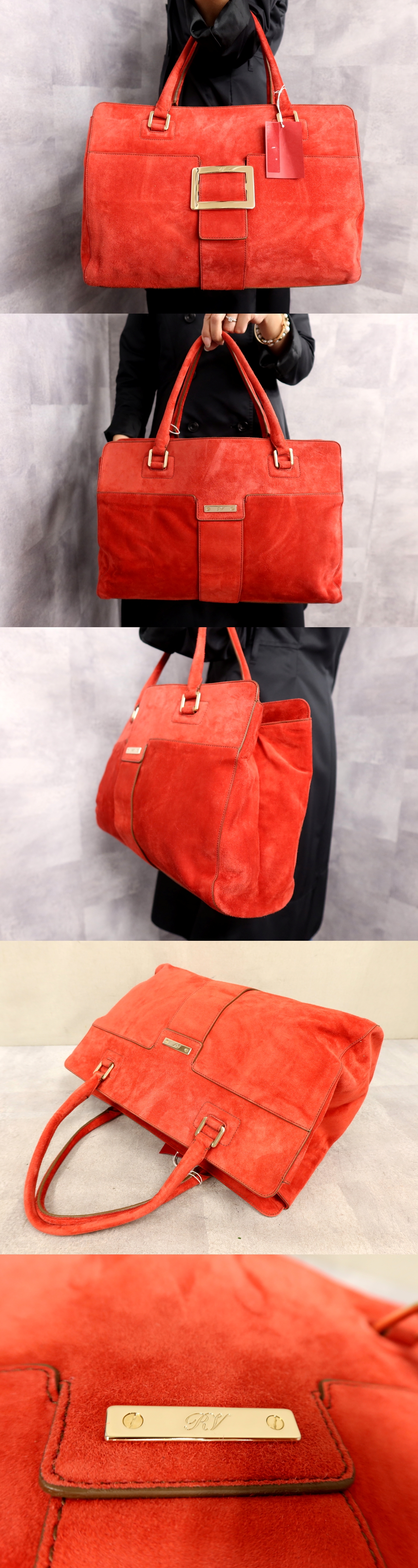 ●超美品●Roger Vivier ロジェヴィヴィエ●スエード レザー 本革●トート バッグ●赤●ゴールド金具●腕掛け●A4 収納 かばん●Js62171 [浏览原始页面]