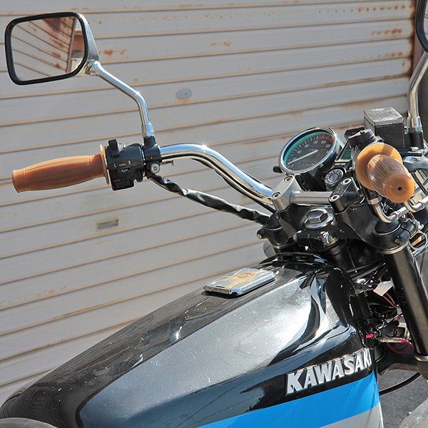 汎用のパイプハンドルです。 Z400FX純正をしぼった形状です。 乗りやすいように高さを少し出しました。 峠からロングツーまでストレス無くこなせます。 幅⇒約63cm 高さ⇒約8cm *22.2パイ用のハンドルベースに対応します。 スチール製 セット内容 パイプハンドル 1本 |