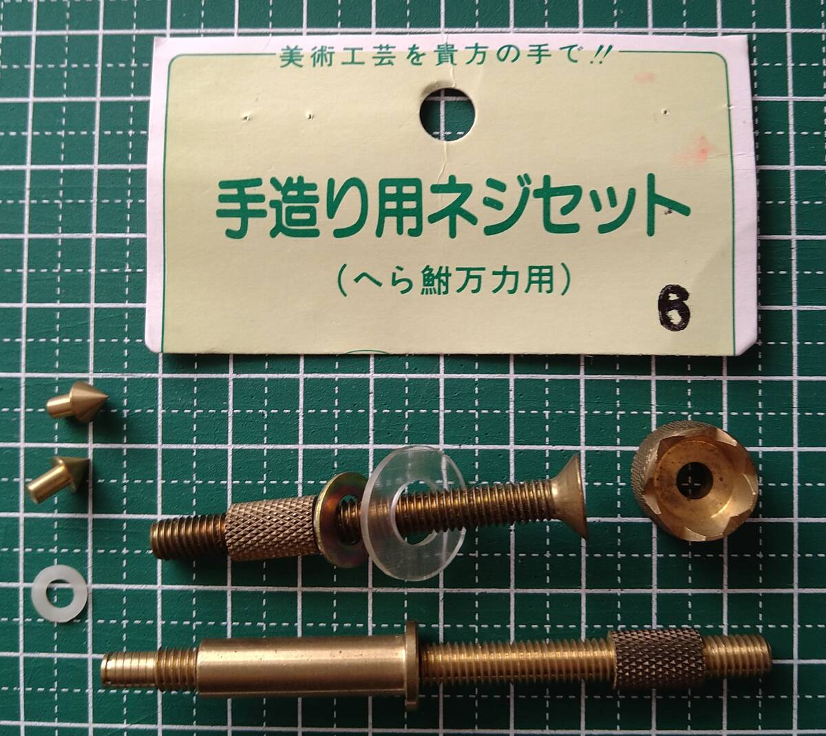 「手造り用ネジセット(へら鮒万力用)」の【中古】です。(緑色のマットはサイズ確認用で商品には含まれませんので留意してください。)