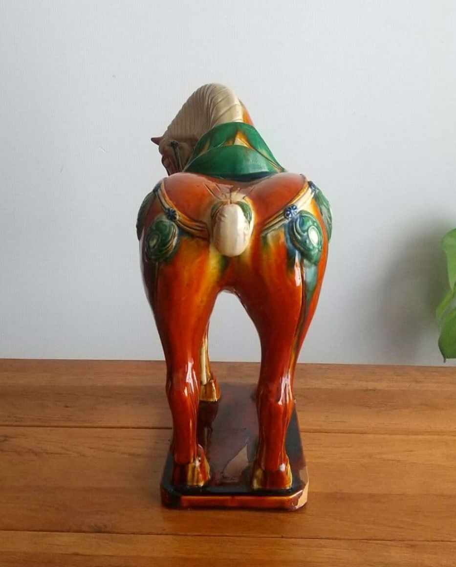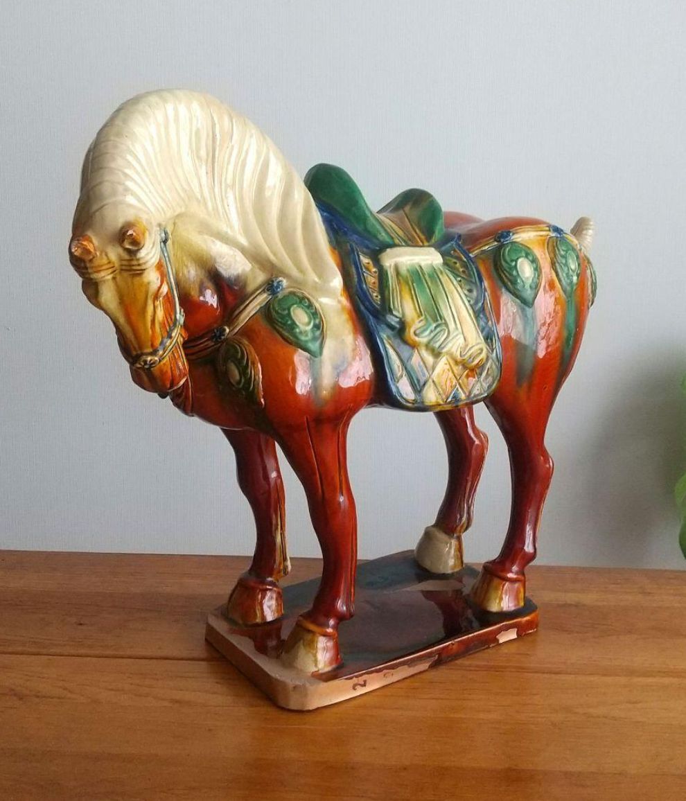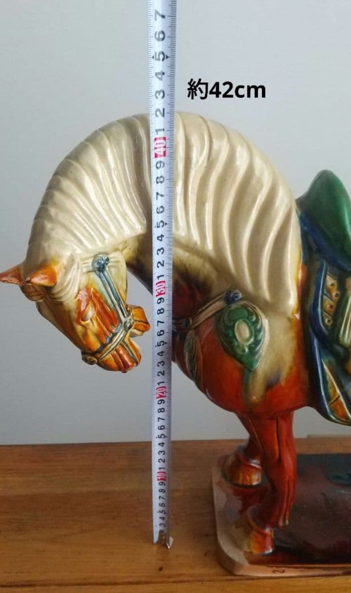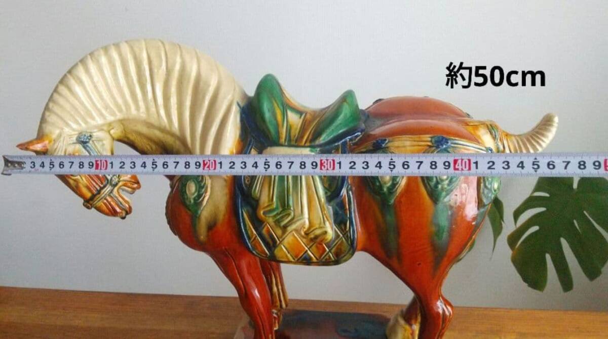 大型 唐三彩 馬 陶器置物 ヴィンテージ 約50×高さ42cm ◎耳に欠け有。◎貫入、スレ等有。