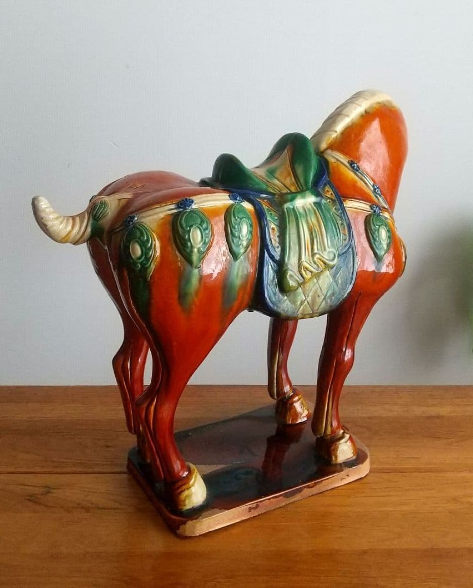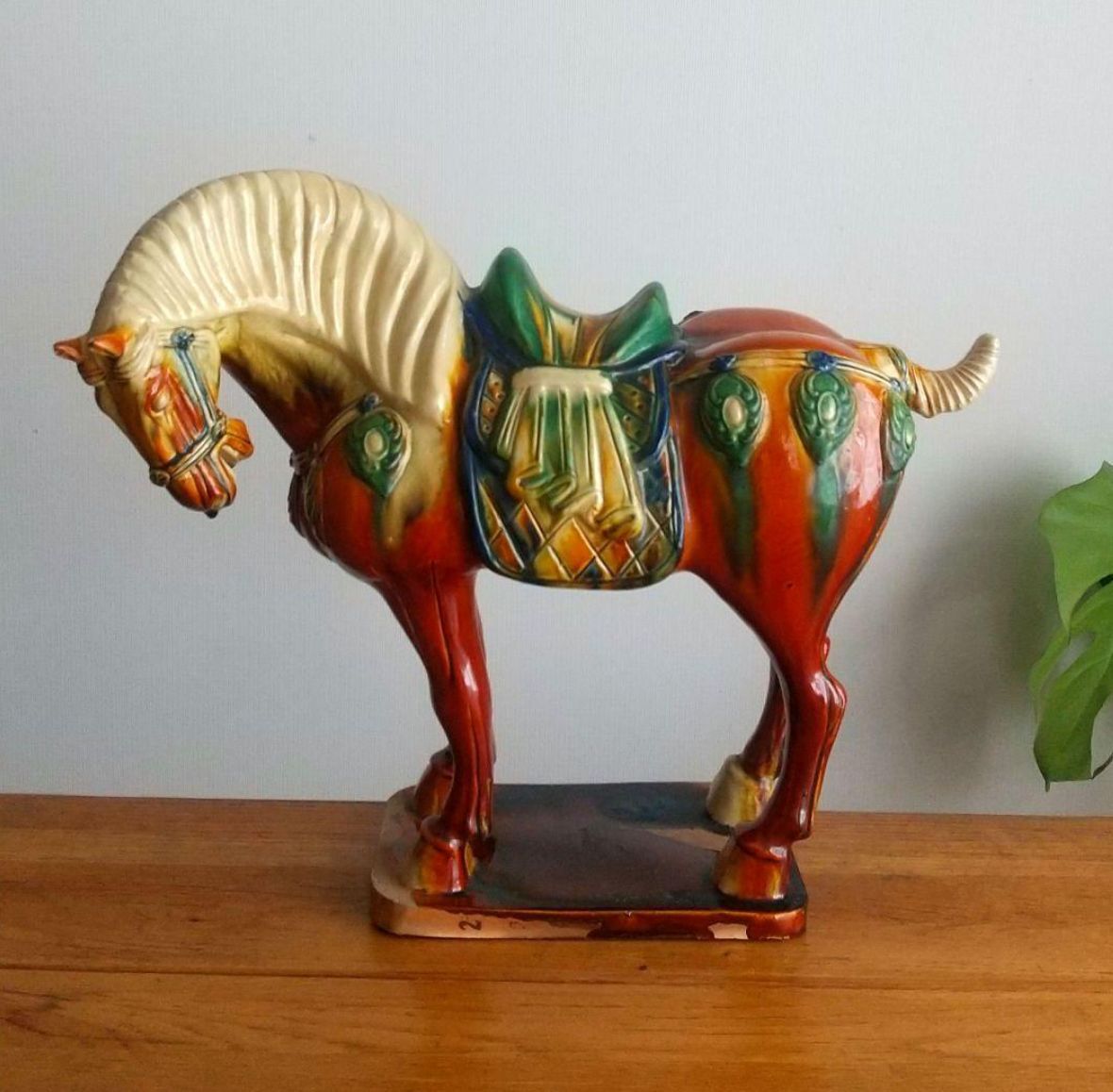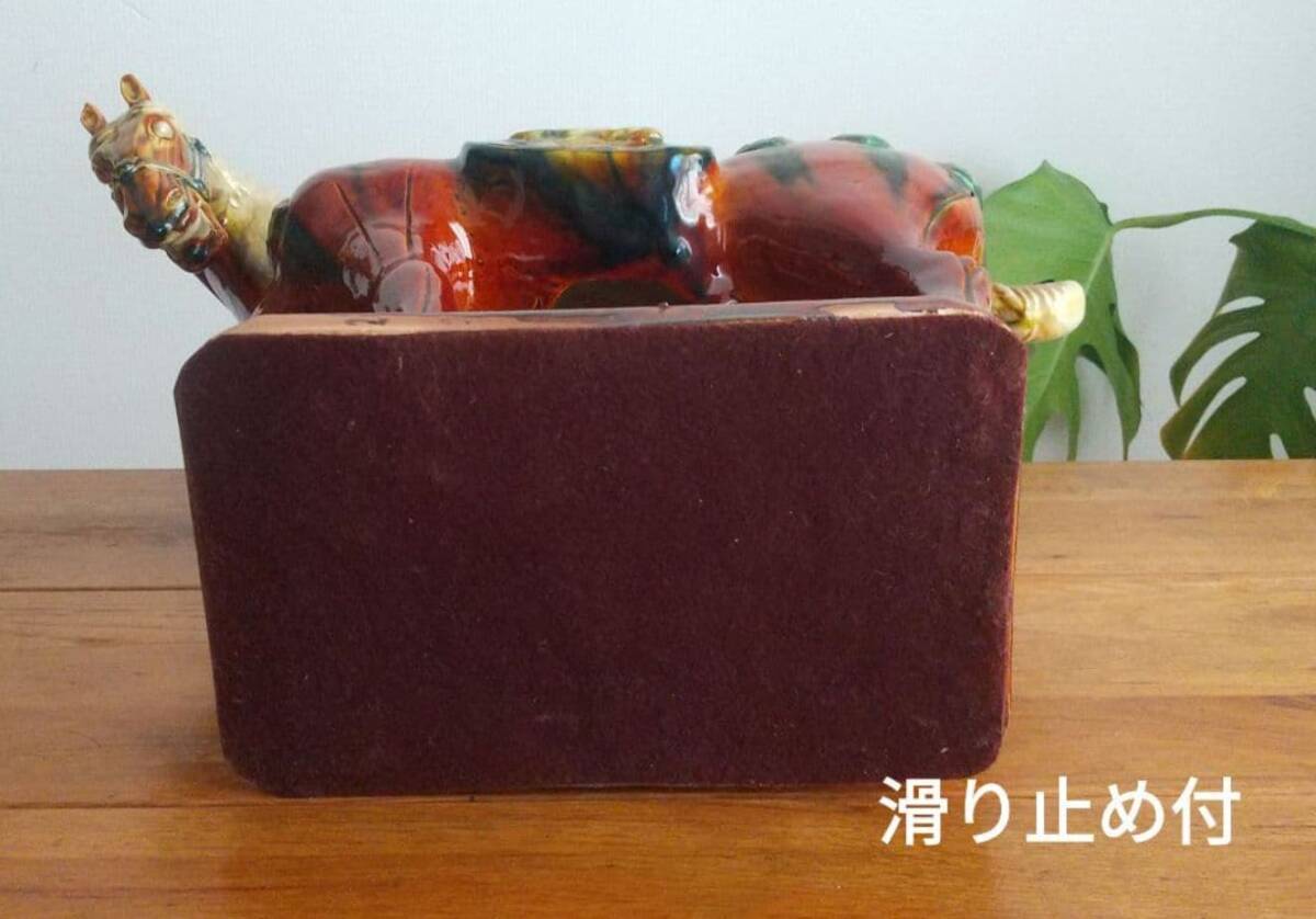 大型 唐三彩 馬 陶器置物 ヴィンテージ 約50×高さ42cm ◎耳に欠け有。◎貫入、スレ等有。