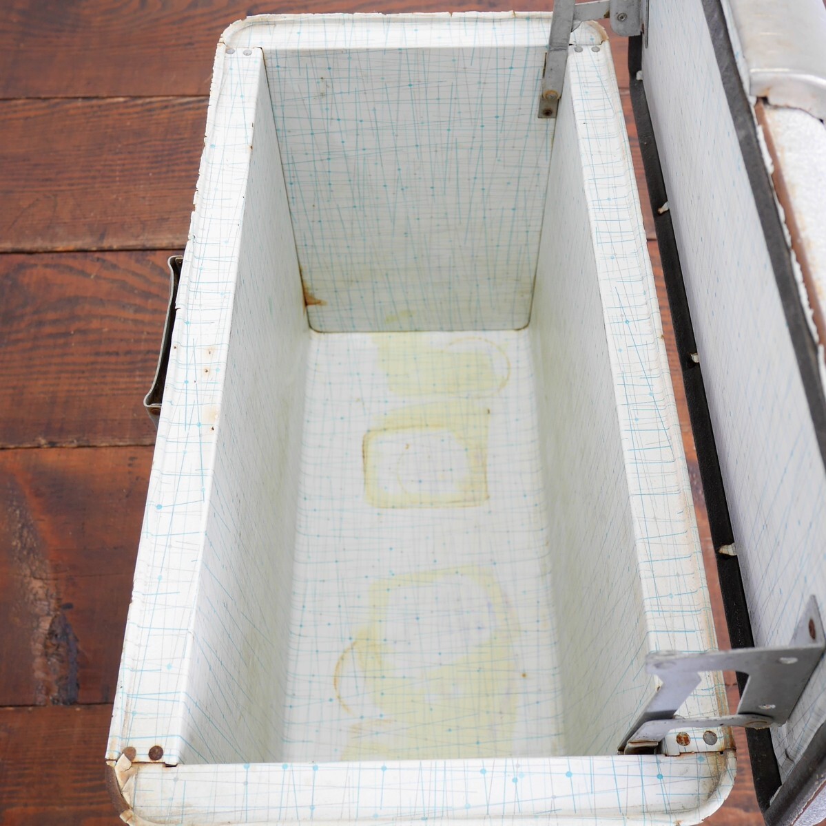 | 商品説明 explanation | ★SPECIAL PRICE \28,000→\12,000 推定1950~1960年代の 「POLORON」社の クーラーボックスです。 ヴィンテージキャンプ用品ではコールマン、サーモスに並ぶ人気のメーカです。 内側は50~60年代らしいデザインで良い雰囲気です。 ディスプレイなどにいかがでしょうか。 |