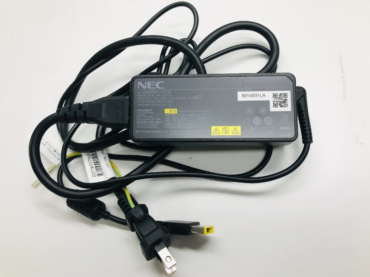 ■□中古動作品 NEC 20V 3.25A ACアダプター PC-VP-WP142 PA-1650-72 充電器 電源コード付き 10個セット□■