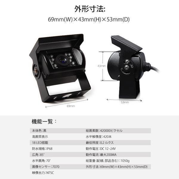 ◆18LED搭載バックカメラ 42万高画質 IP68防水 防塵 暗視対応 バック時のガイドライン表示 12V/24V対応 A0131N
