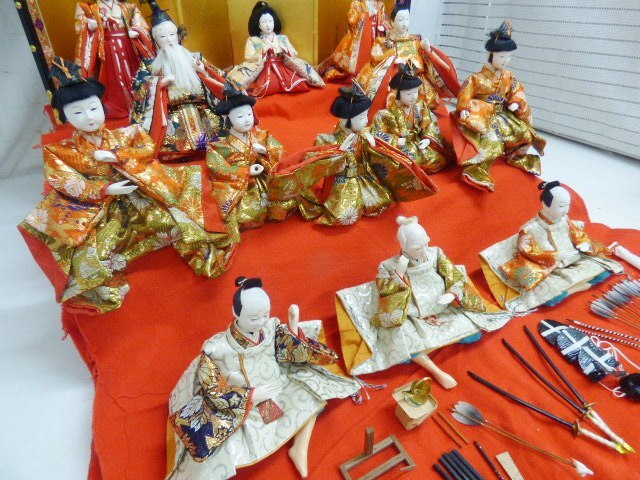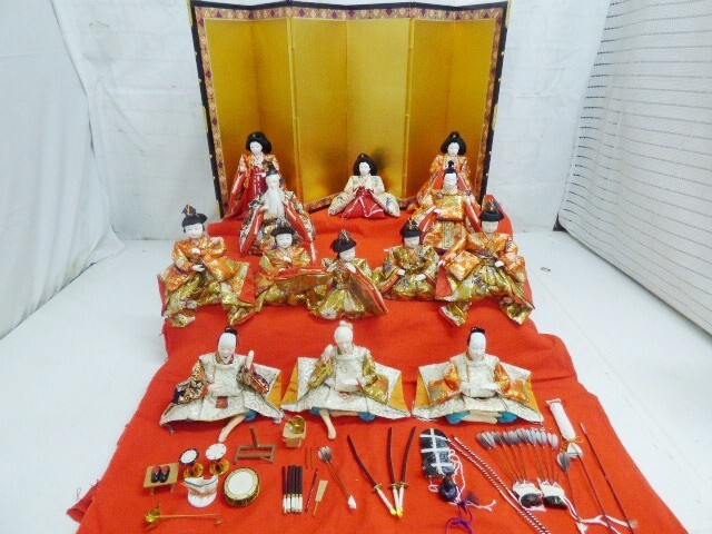 こちらは簡易梱包120サイズまたは厳重梱包140サイズでの発送を予定しております。 送料など詳細は「梱包・発送について」欄に記載しておりますので、そちらをご確認ください。 三人官女 白い着物の人形(約):H14cm 屏風(約):H44.5cm ひな飾りのパーツとなります。 三人官女、五人囃子、右大臣左大臣などの人形もあります。 小道具は破損しているものがあります。また、パーツが不足している可能性があります。 詳細は写真でご確認ください。 写真のものがすべてです(雛飾り以外のものはイメージのため、付属しません) こちらは中古品です。 人形の毛が乱れてしまっているものがあります。 その他シミ、傷、汚れなど、写真をご確認の上での入札をお願いいたします。 詳細複数写真 ← Googleフォト リンク出来る場合写真はGoogleフォト 動画はYouTubeにリンクしています ※梱包について※ 緩衝材を使用した梱包をご希望の場合は60~100サイズまで100円、120~170サイズまで300円を頂戴いたします。 落札時にご希望の旨を必ずご連絡下さい。ご連絡がない場合は簡易梱包で発送致します。 簡易梱包の場合、追加費用はかかりません。 ※簡易梱包は緩衝材等を使用しませんのでご了承下さい。 素人なりに配慮した梱包を心掛けております。 しかしながら配送中にどうしても欠け、ひび、割れ等発生する場合がございますが免責とさせて頂き、返金等は致しかねますのでご了承・ご了解の上ご入札下さい。 詳しくは梱包・発送についてをご確認下さい。 商品ランク(ランクの記載のない商品もございます) A:新品・未使用品。 B:未使用に近い状態です。 C:中古品ですが目立った傷や汚れありません。 D:中古品の為、やや傷や汚があります。 E:中古品の為、傷や汚れ等の使用感が多数あります。 F:全体的に状態が悪い。 ☆個人での主観評価となりますので参考程度にしてください。 | ||||||||||||||||||||||||||||||||||||||||||||||||||||||||