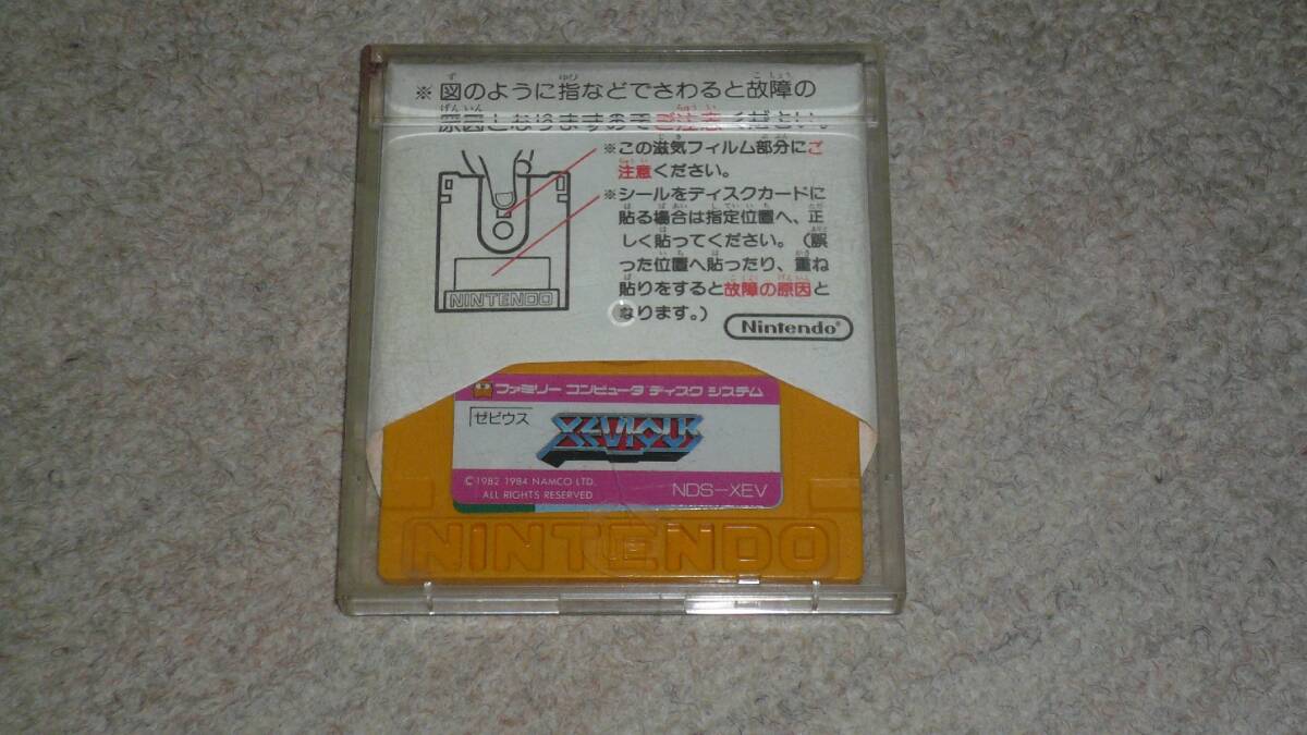 ディスクシステム用ソフト「A面:ゼビウス、B面:ギャラガ」をお願いします。B面のギャラガは、違うソフトのラベルが貼ってありましたので、タイトルがわかるように自作のラベルを貼っています。動作確認済み