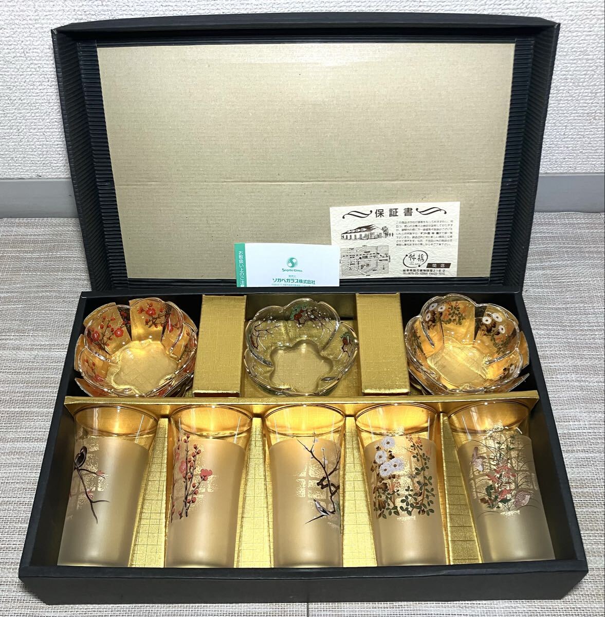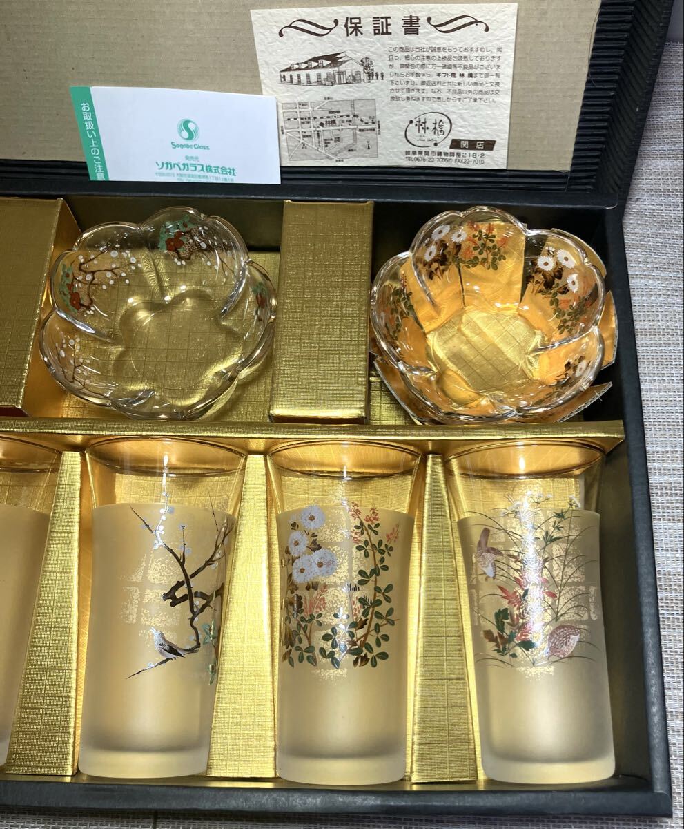 KGNY5870 未使用品 尾形光琳 ソガベガラス 小付鉢付タンブラーセット 光琳絵 デザイン 食器 グラス ガラス 小皿 ビールグラス SG-417